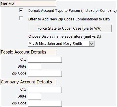 Default Account Type to Person: check this box to initially set the account type to 'Person' on screens where people are added like Enter People [3,1] ... if unchecked, the account type will initialize to 'Company'